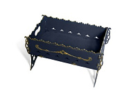 Изготовлен методом современной станочной резки. Мангал для дачи оправдывает вложенные средства долгим сроком эксплуатации за счет толщины металла 3 мм. Для розжига топки мангала можно использовать — древесный уголь, осину, березу, дуб. Удобен для транспортировки в разобранном виде. Мангал обработан высокотемпературной краской и украшен кузнечной золотой патиной. Стандартный цвет мангала — черный.